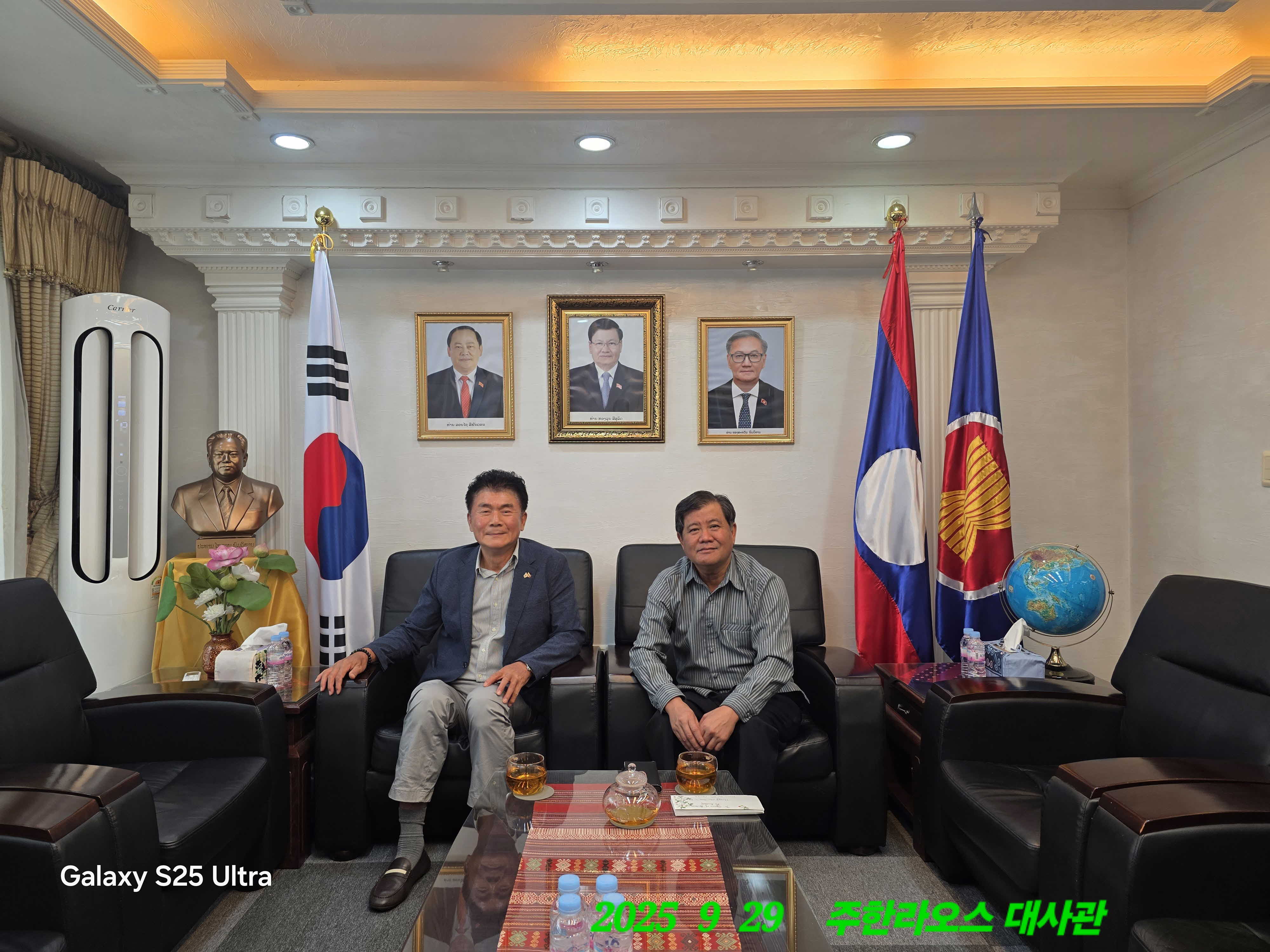 2025년 9월 29일(월) 오전 10시부터 주한라오스 대사관에서 H.E Amb Songkane LUANGMUNINTHONE 주한대사와 (사) 한국-라오스 친선협회 / KLFA 오 명환 회장