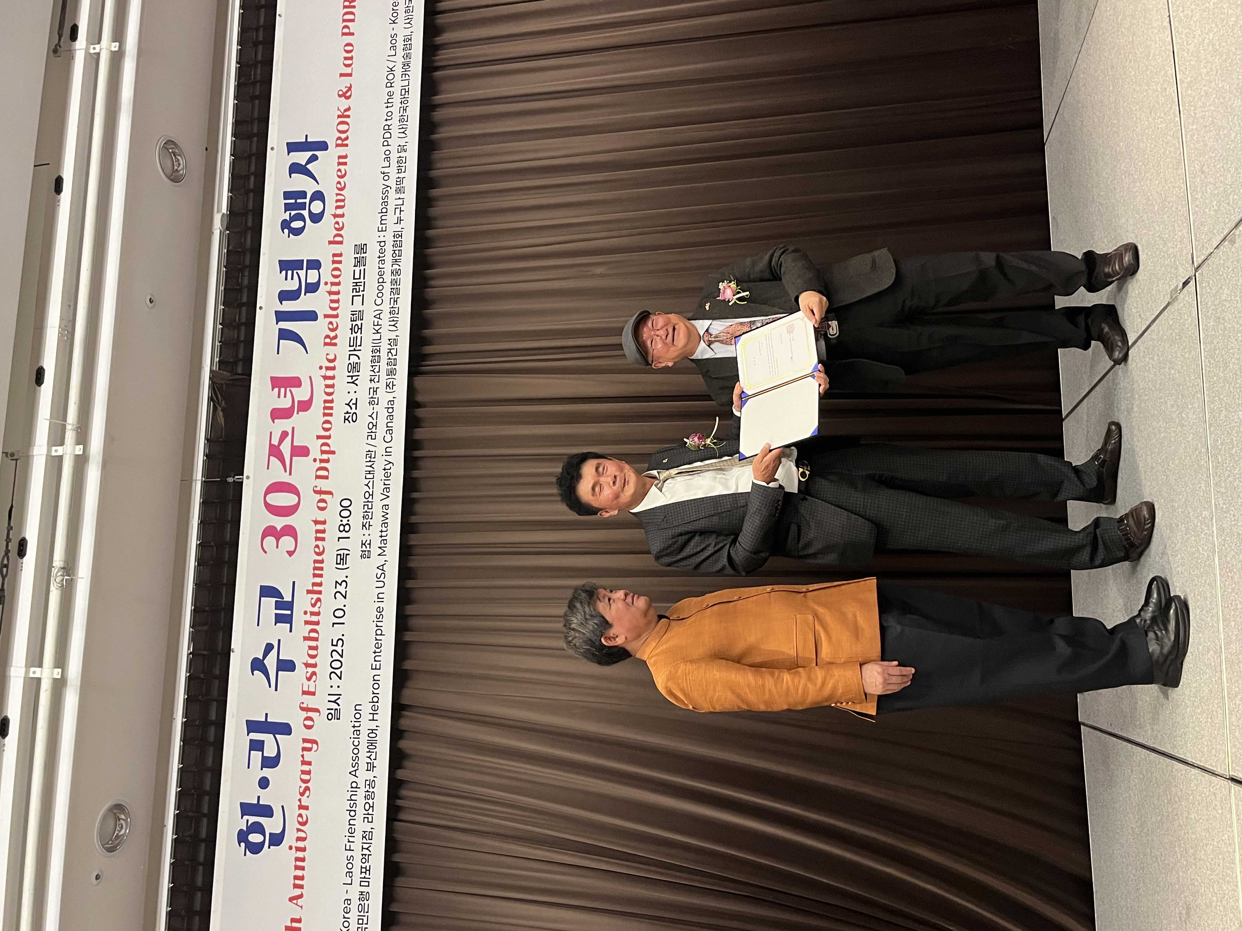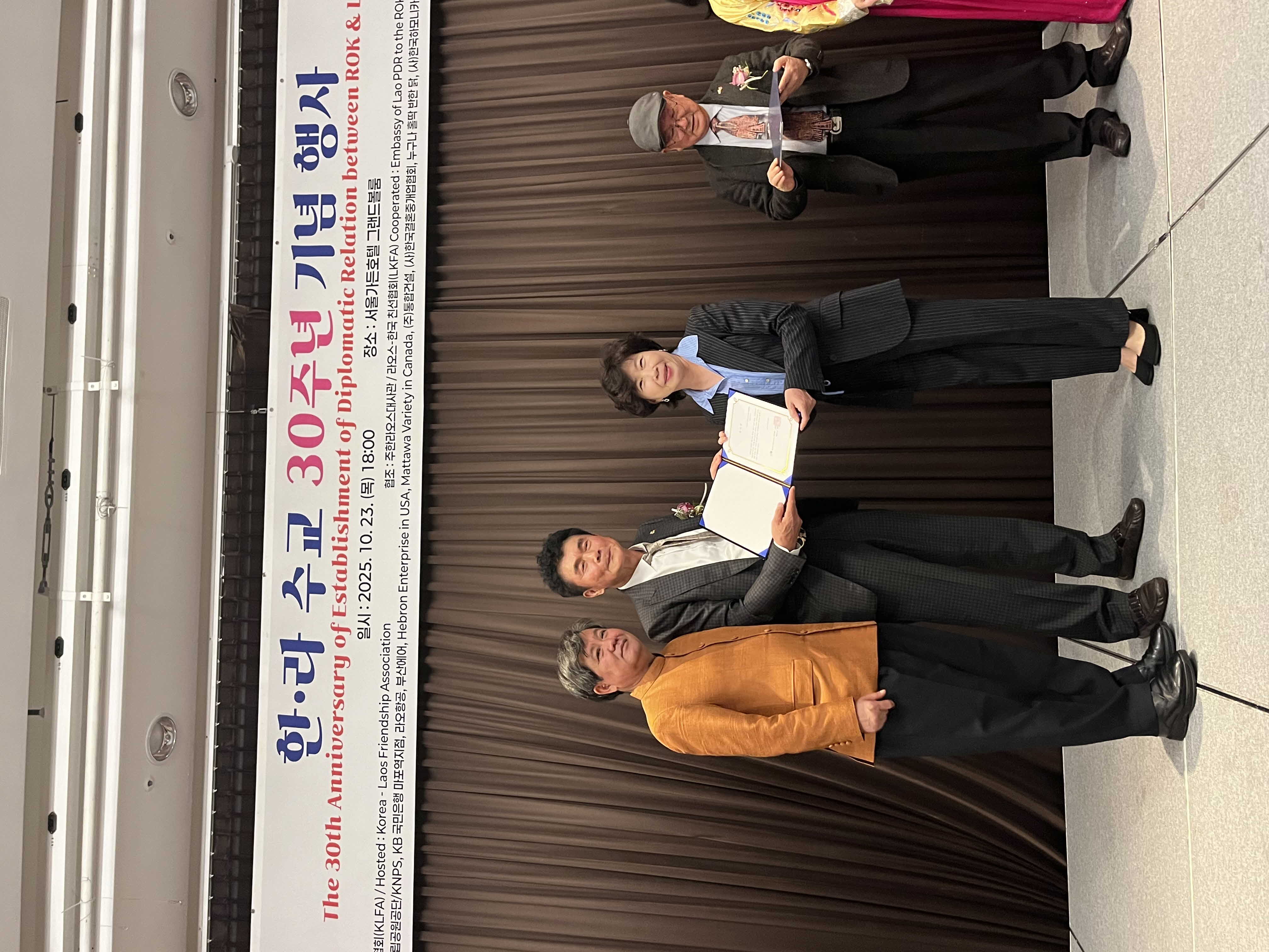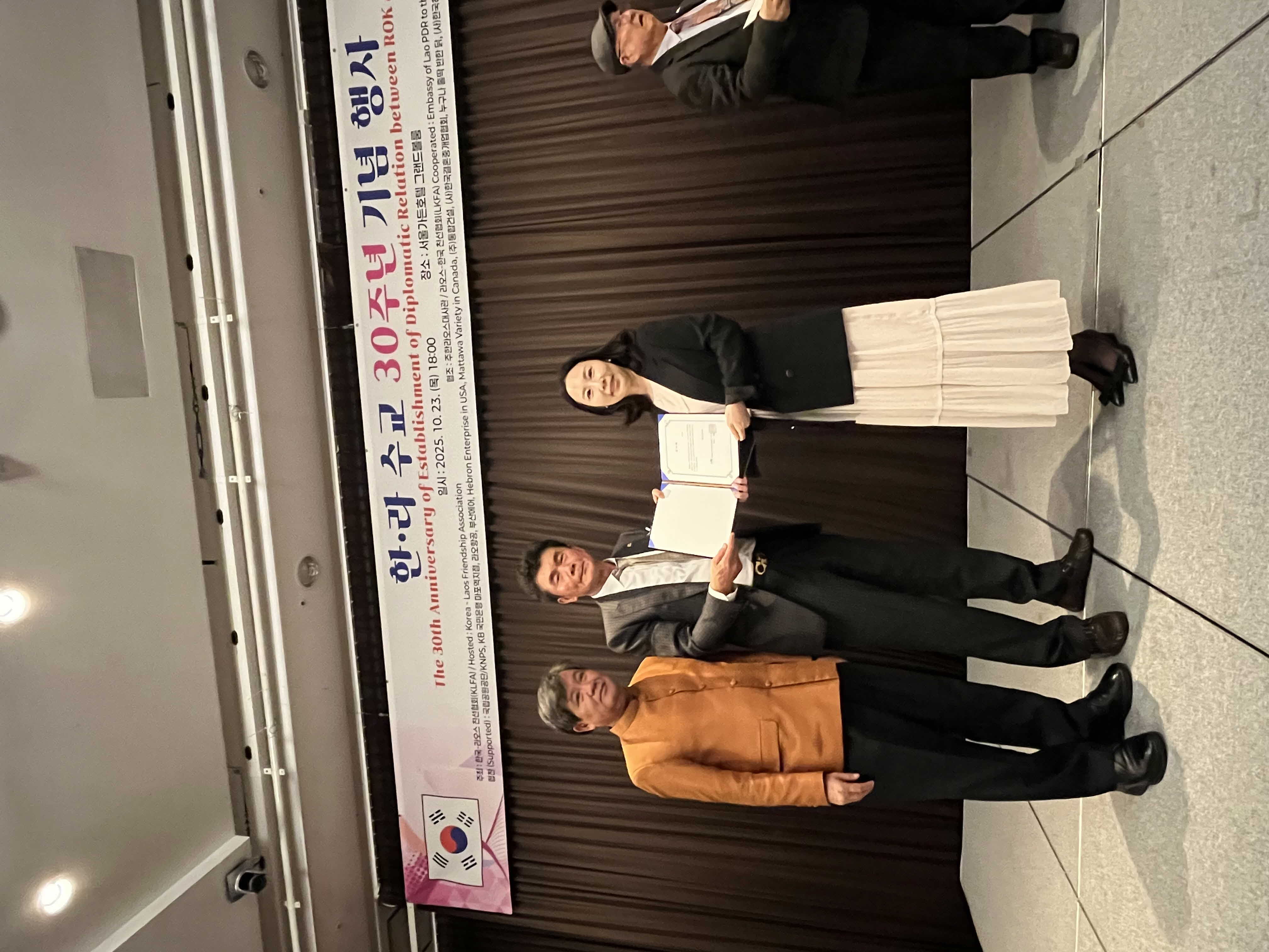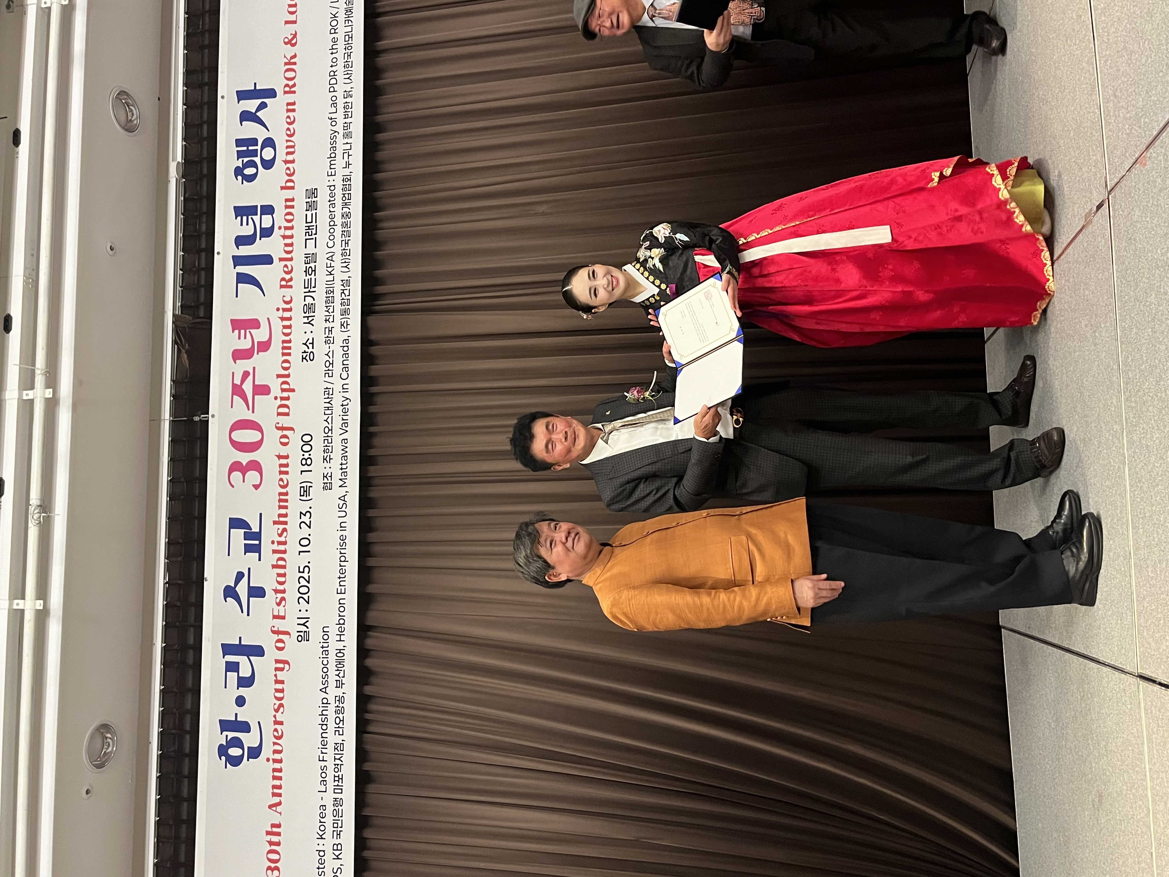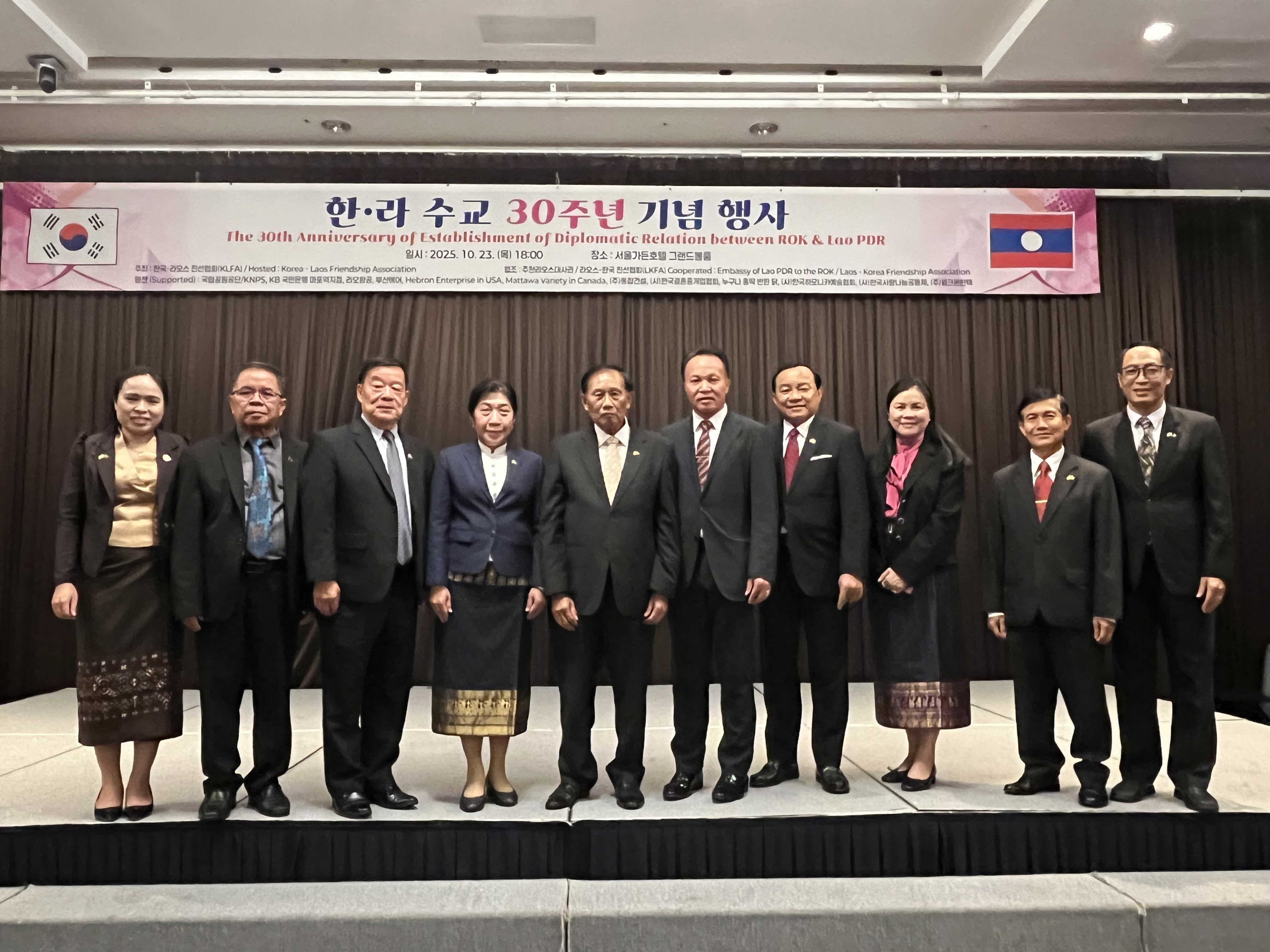 2025년 10월 23일 저녁 6시부터 마포 가든호텔 Grand Ballroom 에서 한국과 라오스 수교 30주년을 축하하는 기념 행사가 성대하게 거행 되었습니다. 본 수교 30주년 행사는 KLFA ( 사단법인 한국-라오스 친선협회 협회장 / 오 명환 ) 가 주최하고 주한라오스 대사관이 협조하는 행사 입니다. 라오스 측에서는 요번 14차 총회 참석차 방한한 LKFA (라오스-한국친선협회 협회장 / H.E Khamsouay KEODALAVONG ) 대표단 (상공회의소 부회장 /노둥부국장 ㆍ부국장ㆍ 대외협력처 국장