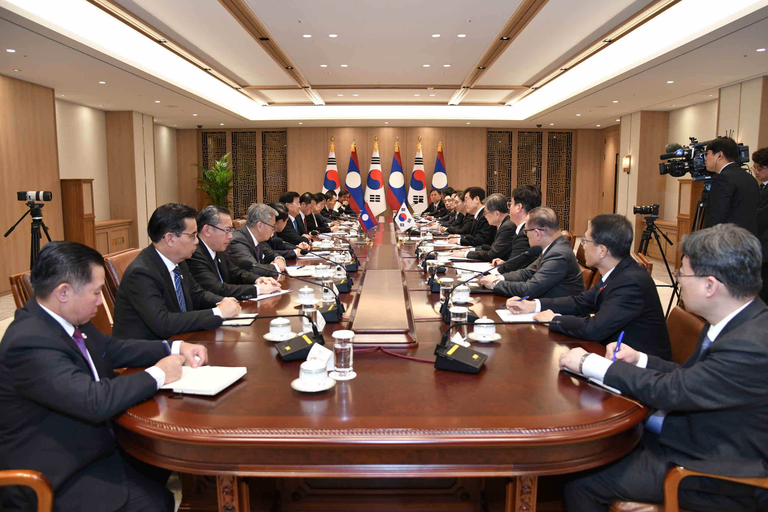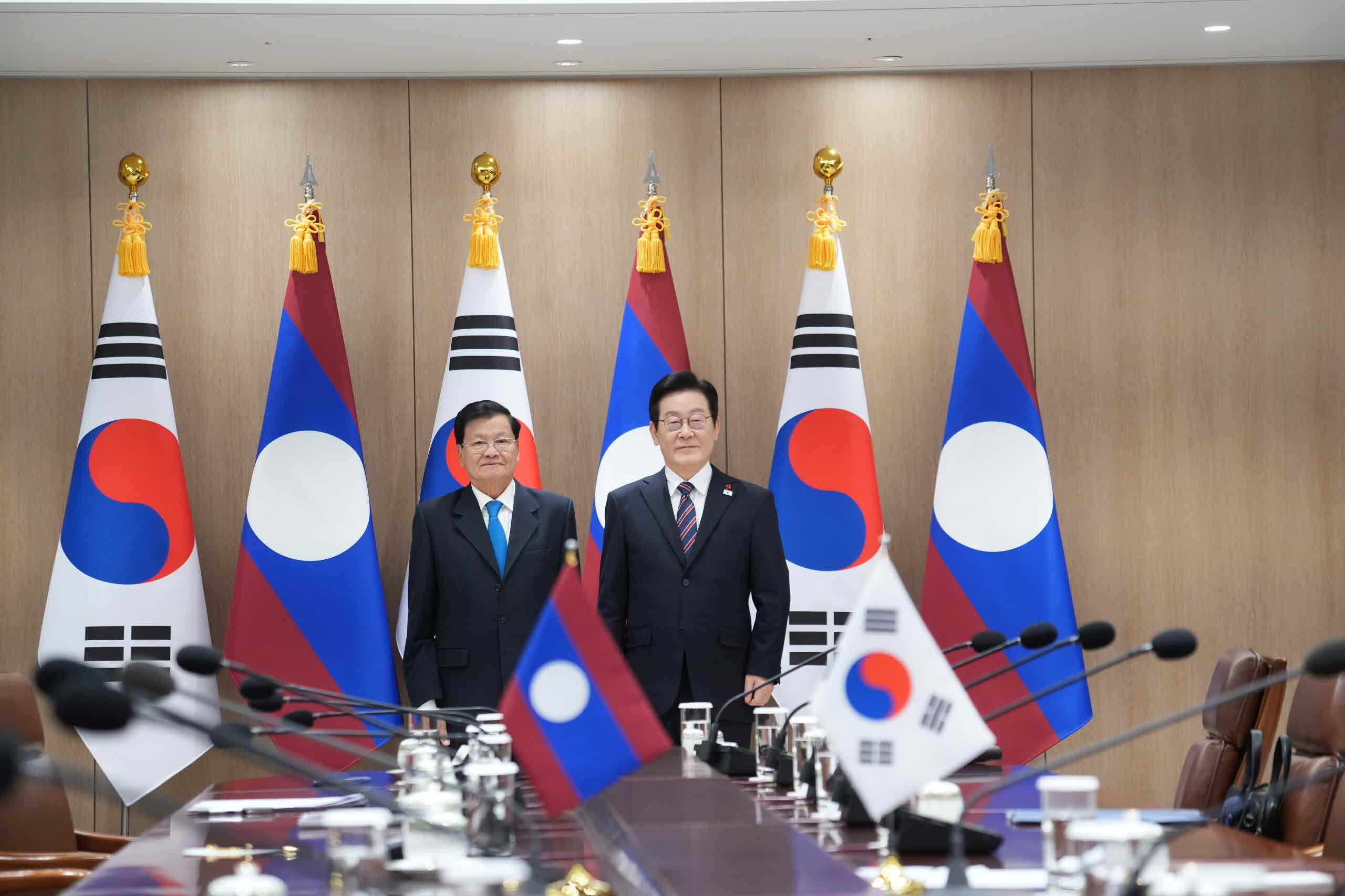 2025.12.15 오전 대한민국 대통령실 에서 라오스 통룬 시술릿 대통령 ( 국가 주석 ) 과 대한민국 대통령 간에 정상회담이 있었습니다 회담 후 대한민국 대통령 내외께서 주최하는 오찬이 대통렬실 자유홀 에서 있었으며 양국 대통령은 인사말에서 한국과 라오스는 포괄적 동반자 관계로 Up Grade 됐다고 발표 하였습니다.