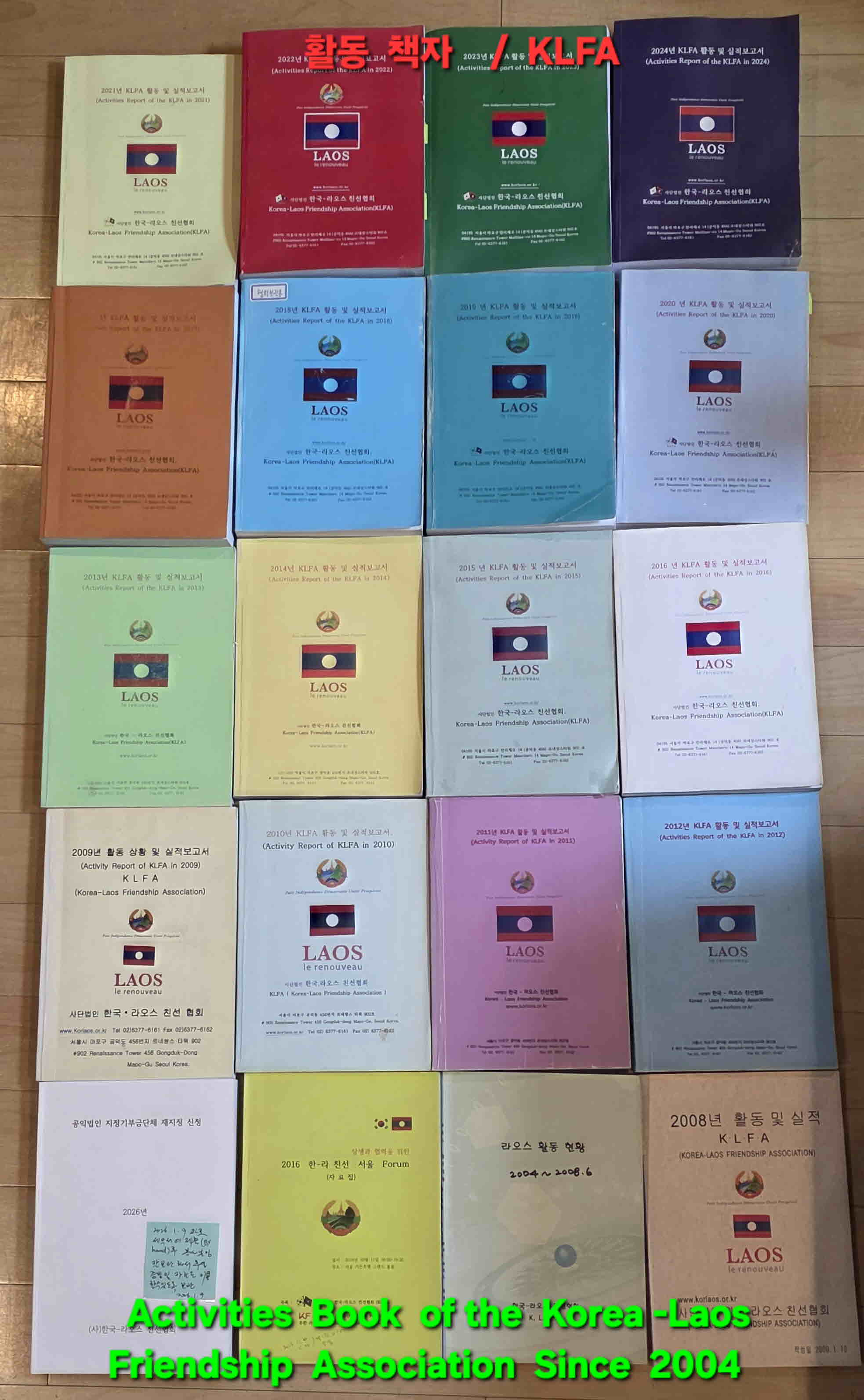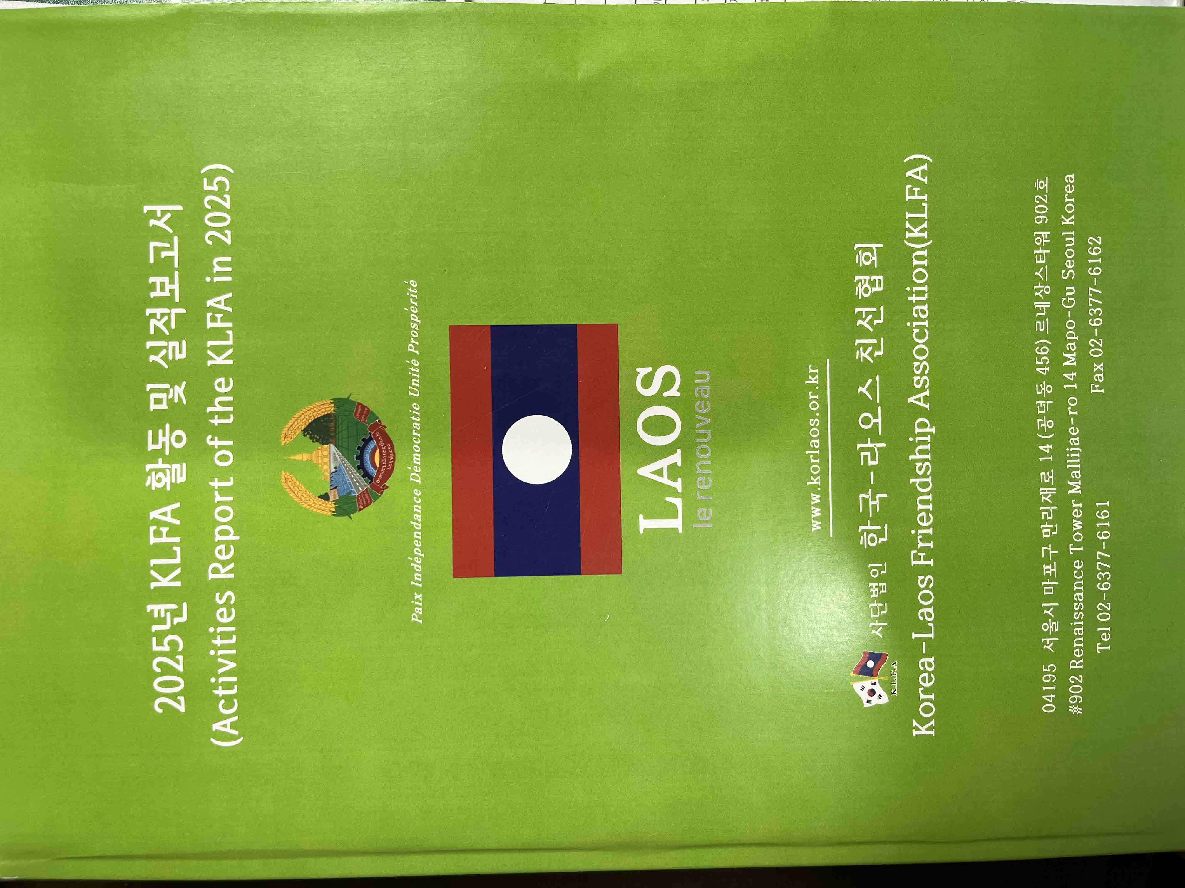 KLFA 는 매년 활동 및 실적 보고서를 책자로 만들어 2026 / 2 / 27 (주한라오스 대사관) 2026 / 2 / 28 (Laos 현지 LKFA ) 2026 / 3 / 1 ( 주라오스 대한민국 대사관 )에 전달 하였습니다.
