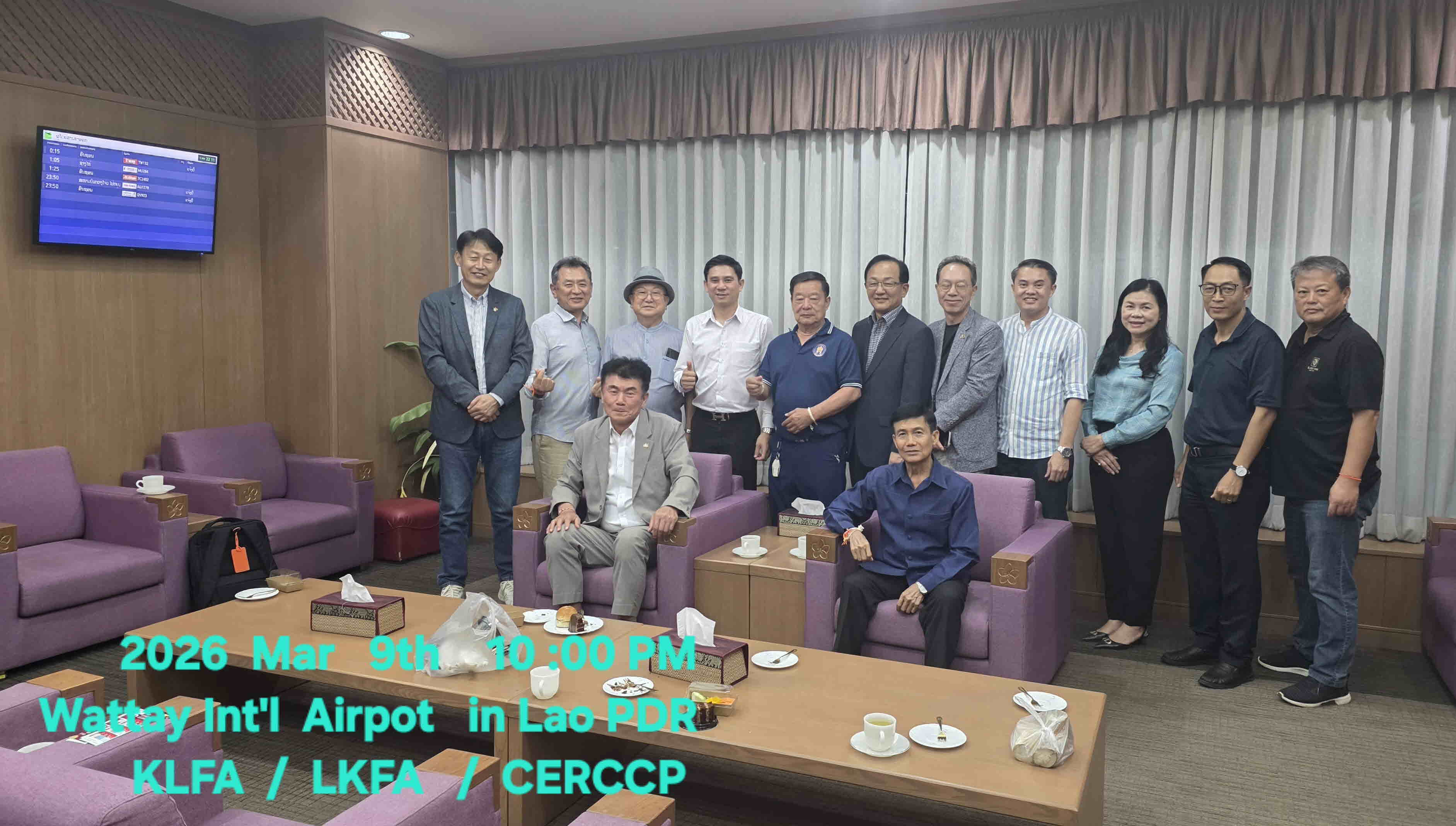 KLFA 에서는 오 명환 회장, 장 석용 고문, 이 창균 이사, 남 완주/ 박 원준/ 김 동철/ 강 금문 운영위원, 오 윤환 이사, 김 한중 OKTA 라오스 지회장, 채 훈병 현지 사업인.