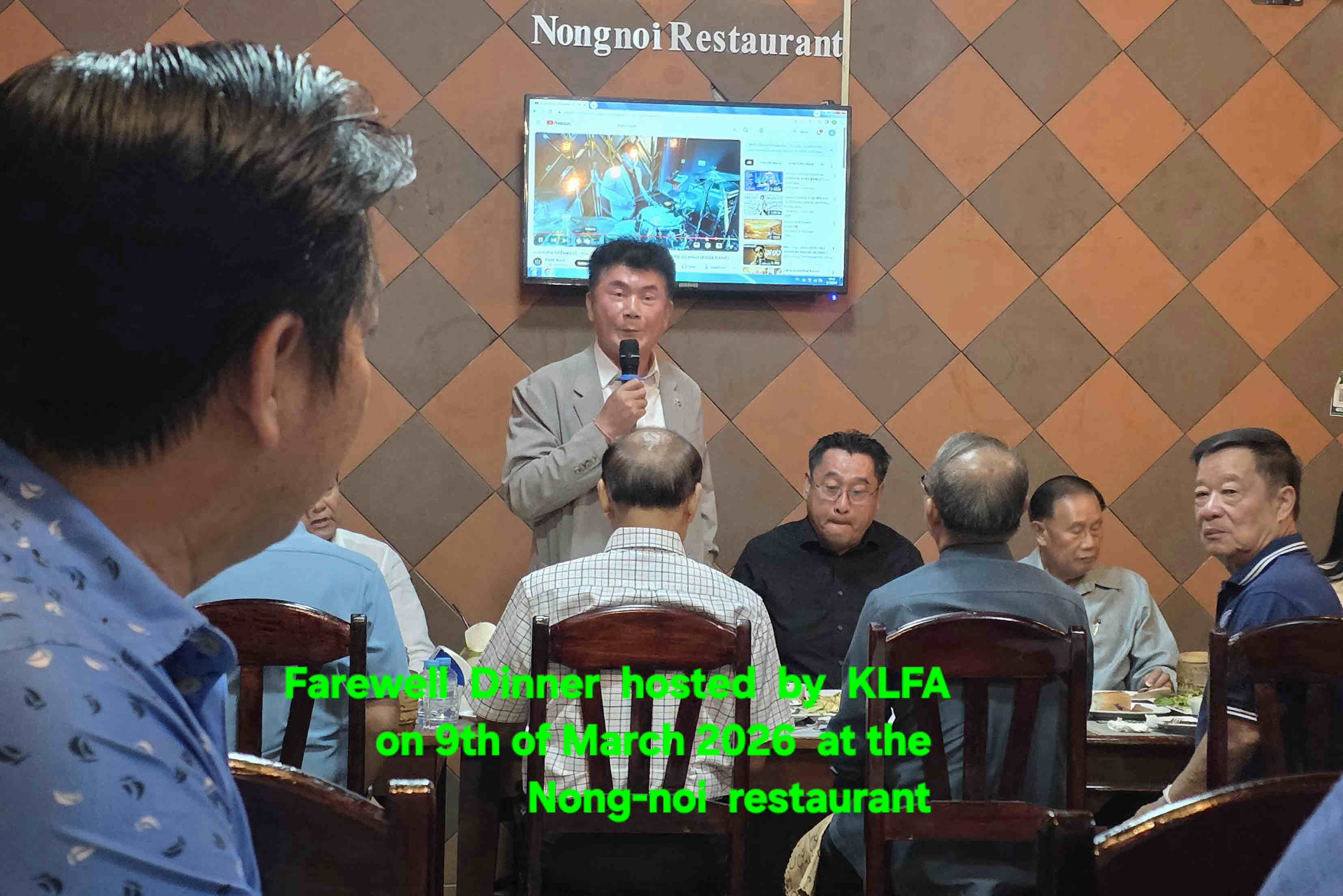 2026년 3월 9일 저녁 (사) 한국-라오스 친선협회/KLFA 는 Laos 현지에서 LKFA, CERCCP 와 같이 9박 10일 간의 봉사 및 현지 활동을 성공적으로 마치고 Vientiane 시내에 있는 Nong-Noi Restaurant 에서 Farewell Dinner Reception 을 주최하였습니다. (지난 2026. 3. 2. 저녁 Kuoa Lao Restaurant 에서 LKFA 가 Host 한 Welcoming Dinner에 대한 답례).