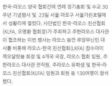 177 2025. 10. 23. [연합뉴스] 한국-라오스 친선협회, 서울서 수교 사진 첨부파일 관리자 2025.11.19 13:50